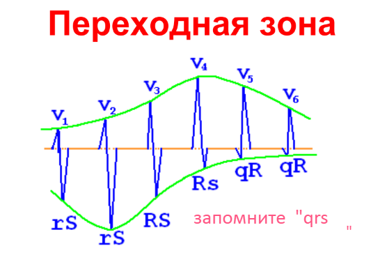 4. Если R отрицательный в I, а в aVF положительный — ось отклонена вправо (+90° до +180°).