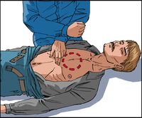 Прекращать непрямой массаж сердца, пока идет подготовка к дефибрилляции.